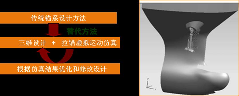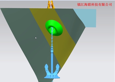 經(jīng)過與國內行業(yè)權威設計院的合作過,并將該技術應用于船舶建造中,對錨鏈筒、錨臺、錨唇、錨穴、錨、錨鏈、錨機、止鏈器、導鏈滾輪、船體等進行三維設計和自動建模,實現(xiàn)了三維錨系計,保證了錨系設計中空間位置定位的準確性,并通過三維軟件導出二維CAD圖紙,扭轉了一直以來二維圖紙與船廠錨系施工脫節(jié)的局面,極大提高了錨系設計的效率。除此之外,利用軟件的后期的仿真功能,模擬并預報收錨過程的動態(tài)效果并給出調整方案。